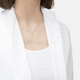Liebeskind Berlin Halskette bestehend aus einer goldenen Ankerkette und einem goldenem, runden Anhänger mit Logoaufdruck und Zirkoniastein; Tragebild